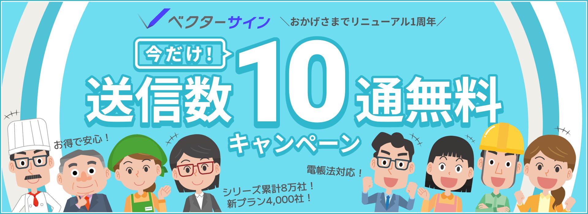 本キャンペーンは、「ベクターサイン」において、送信数10通を無料で利用できる初の取り組みです。
